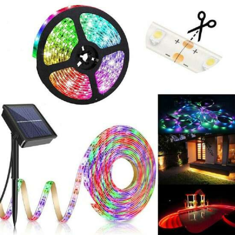 1 kép Távirányítással vezérelhető, időzíthető, napelemes, kültéri RGB LED szalag - 5M