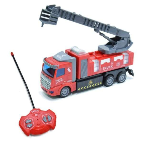 Távirányítós, világító tűzoltóautó kihajtható emelődaruval
