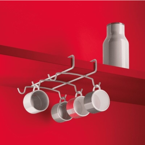 Bögretartó, pohártartó. Tazza polc alá illeszthető bögretartó, mely hat bögre tárolására alkalmas
