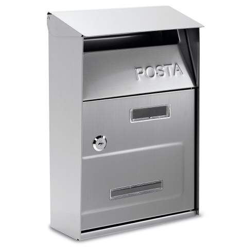 Technomax-Giglio I időjárásálló postaláda •rozsdamentes acél postaláda•kerítésen, kapun kívülre szerelhető•lefelé nyíló postaláda ajtó•lamellás zár kettő darab kulccsal•betekintő nyílás•műanyag névtartó•hátsó rögzítő furat•rögzítő csavarokkal áruljuk
