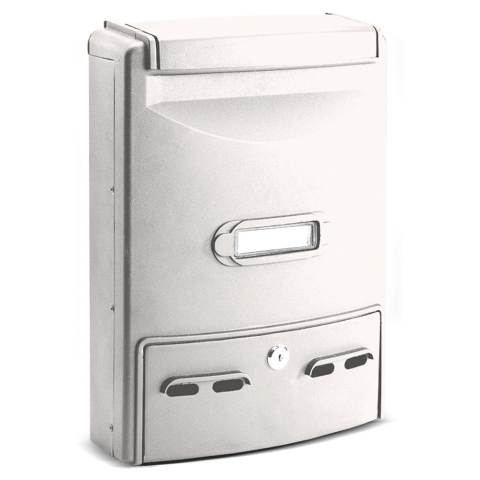 Technomax-Ginestra B időjárásálló postaláda •horganyzott acéllemez postaláda•alumínium előlappal•pórszórással színezve•kerítésen, kapun kívülre szerelhető•lefelé nyíló postaláda ajtó•lamellás zár kettő darab kulccsal•betekintő nyílás•műanyag névtartó•h