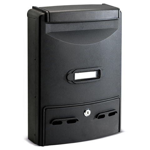 Technomax-Ginestra N időjárásálló postaláda •horganyzott acéllemez postaláda•alumínium előlappal•pórszórással színezve•kerítésen, kapun kívülre szerelhető•lefelé nyíló postaláda ajtó•lamellás zár kettő darab kulccsal•betekintő nyílás•műanyag névtartó•h