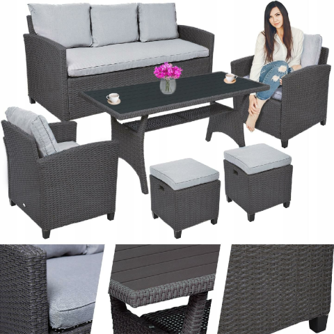 1 kép TECHNORATTAN kerti bútor szett: asztal, kanapé, fotel, MILANO pihenőgarnitúra