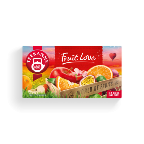 Fruit Love - harmónikus gyümölcstea keverék. Szeress bele a gyümölcsökbe újra és újra, amint elfogyasztod az alma a hibiszkusz és a csipkebogyó keverékét megízesítve a maracuja és narancs édes jegyeivel. Találd meg életed szerelmét egy csés