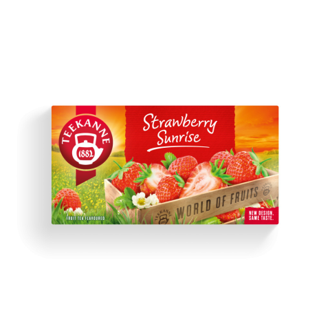 A TEEKANNE World of Fruits a legfinomabb gyümölcsteák egyedülálló válogatása, amely egy egészen új világ felfedezésére csábít. Élvezze a TEEKANNE World of Fruits Strawberry Sunrise csodálatos élményét – kivételesen finom tea természetes gyü