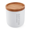 Doboz kozmetikai tamponok vagy egyéb kellékek számára. Fehér színű. Anyaga polirezin, bambuszfa.