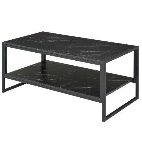 Téglalap alakú asztal polccal, Acél / PAL, 106x50x47 cm, fekete bútor termékleírás
