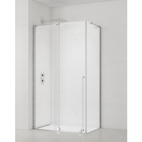Zuhanykabin tömör fallal, fényes krómozott, a töltelék átlátszó üvegből készült, díszítés nélkül. A termék Easy Clean kivitelű, amely megkönnyíti a tisztítást és minimalizálja a vízkőlerakódást. Csúsztatható nyitású rendszer. Megjelölés - bal és jobb tájolás.