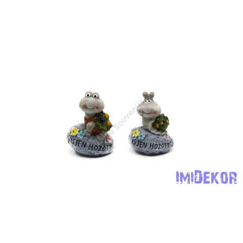 Teknős figura kövön ISTEN HOZOTT felirattal 12,5x9,3x16,6 cm dekorációs kellék árgrafikon