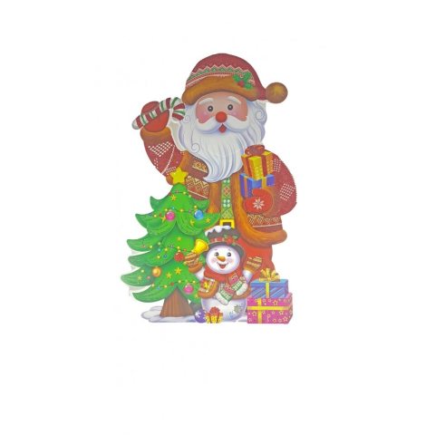 Karácsonyi álló dekoráció 88cm magas. Mutatós karácsonyi dekoráció. A Mikulás fenyőfával és hóemberrel ünnepi hangulatot varázsol az adventi időszakban, karácsonykor.