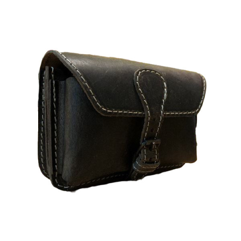 Telefontokos bőr övtáska, elején csattal, szélein díszvarrással, barna színben. Hátulján 2 db bőr bújtató az övhöz való felfogatáshoz. Külső mérete: 18 x 10,5 x 5 cm Anyaga:Valódi marhabőr. Magyar bőrdíszműves termék, kézzel készült. Nagyméretű telefonok