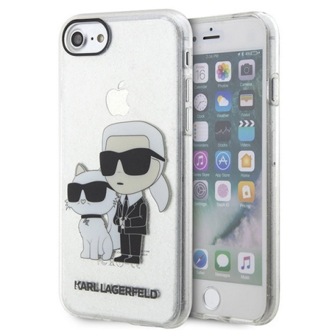 1 kép Telefontok iPhone 7 - Karl Lagerfeld Glitter Karl&Choupette átlátszó csillámos hátlap tok