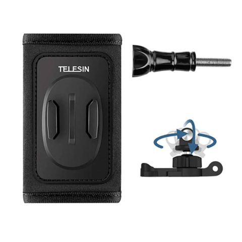 Szerezzen új perspektívát akciófelvételeihez a praktikus TELESIN hátizsákpánt‑tartó készlettel. Az elforgatható mechanizmus 360°‑os rotációt és 90°‑os állítható döntést kínál a maximális rugalmasságért. A masszív alumínium szerkezetnek köszönhetően a tartó stabil, tartós, és kompatibilis a GoPro, DJI OSMO ACTION, INSTA360 és más akciókamerákkal.