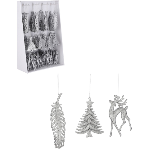 A House of Seasons ezüst karácsonyi díszei elegáns alternatívát jelentenek a gömbök vagy színes díszek helyett. Ezek a díszek három különböző kialakításban elérhetőek: tollak, fenyőfák és őzek.