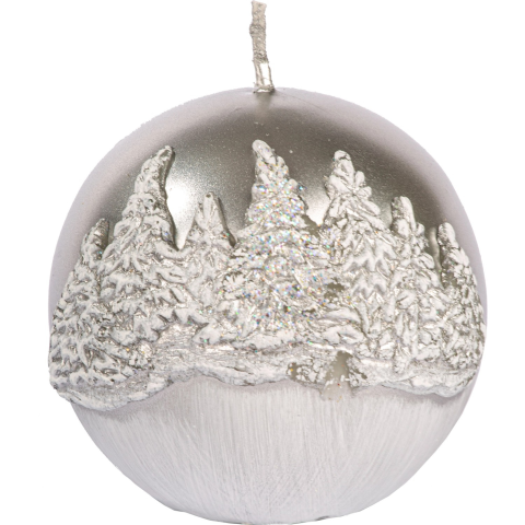 1 kép Téli erdő gömbgyertya 80 mm átmérővel ezüst színben