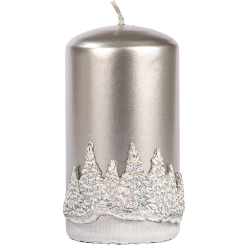 1 kép Téli erdő törzsgyertya 150 mm magas ezüst színben