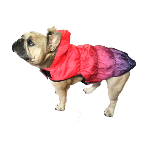 Téli kutyakabát szőrmés kapucnival, piros, L-es