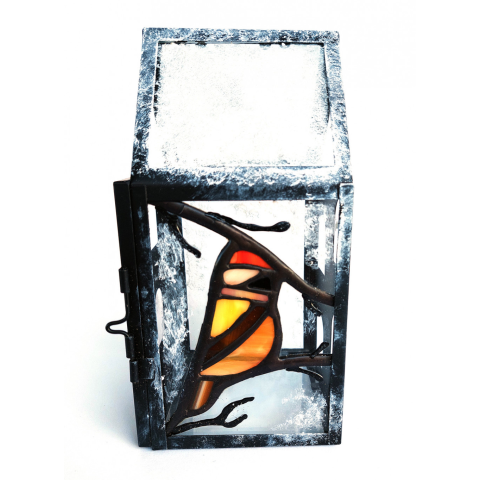 1 kép Téli madaras házikó alakú Tiffany üveg lámpás 9×19 cm