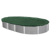 Supreme téli takaró Ovális téli takaró – Földfelszíni medencékhez Jellemzők: Az iparági standard téli takarókhoz képest vastagabb, ellenállóbb, erősített laminált polietilén anyagból készült. A takaró maximális UV-sugárzás elleni védelemmel van el