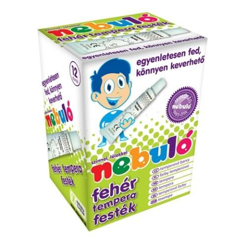 12 ml-es alumínium tubusos fehér tempera. Könnyen keverhető és egyenletesen fedő festék.