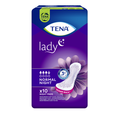 TENA Lady Normal Night betét - 10 db Éjszakai inkontinenciabetét alkalmi és rendszeres vizelettartási probléma esetére. TENA Lady Normal Night betét - 10 db A TENA Lady Normal Night éjszakai inkontinenciabetét extra hosszú, hátul pedig kiszélesedik,