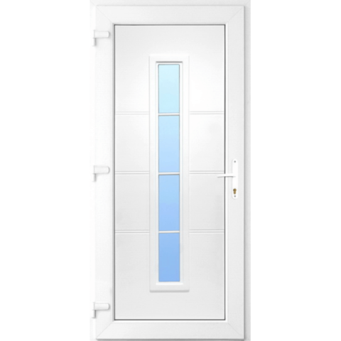 PVC balos bejárati ajtó fehér színben, kilinccsel.