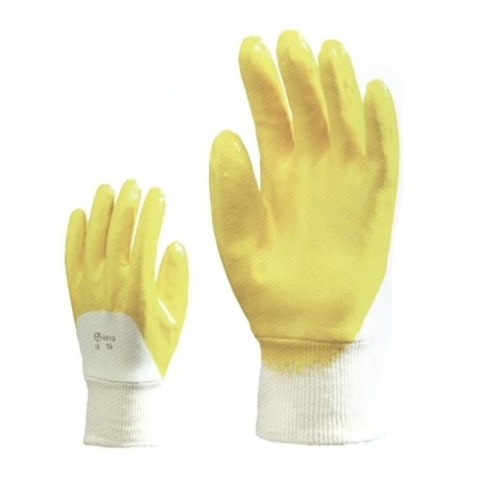 TENYÉREN MÁRTOTT SÁRGA NITRIL KESZTYŰ_8 * pamutra ökölcsontig mártott sárga nitril kesztyű * csúszás ellen enyhén érdesített tenyér, * gumírozott mandzsetta * univerzális használatra szánt védőkesztyű mechanikai ártalmak ellen EN 388:2016 3111X