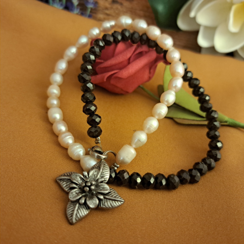 Amorf édesvízi gyöngy és csiszolt Csehkristály gyöngysor . Elegáns és egyedi.Hosszúság: 44 cmSzélesség: 0,7 cm