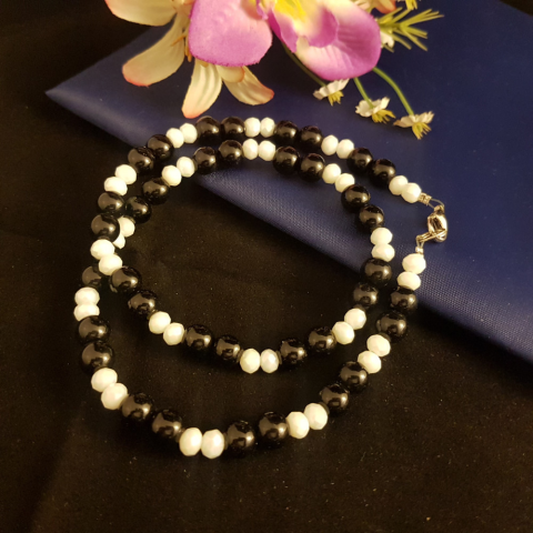 Amorf édesvízi gyöngy és csiszolt Csehkristály gyöngysor . Elegáns és egyedi.Hosszúság: 44 cmSzélesség: 0,7 cm