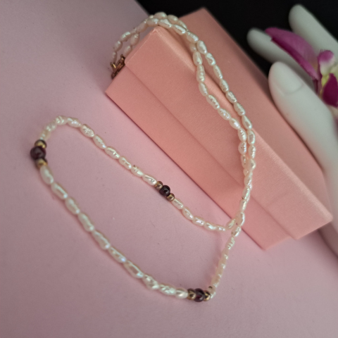 1 kép Tenyésztett gyöngy nyaklánc Gránát kővel