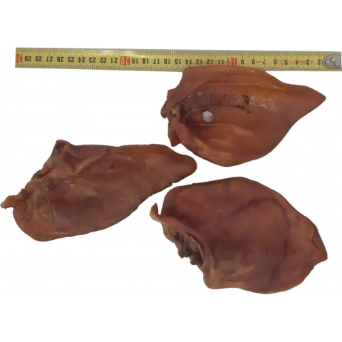 A sertésfül a kutyák kedvence. Ízletes, tápláló és könnyen emészthető. Tisztítja, ápolja a fogakat. Segít eltávolítani a lepedéket, masszírozza a fogínyt, így megelőzi a fogkőképződést. 100%-ban természetes, színezékek és tartósítószerek hozzáadás nélkül.