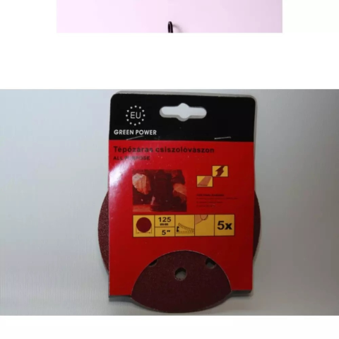 Tépőzáras csiszoló 5db -os 8 lyukas 80 -as méretü125mm barkácsgép tartozék árgrafikon