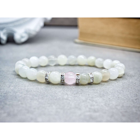 Termékenység segítő rózsakvarc és holdkő ásvány karkötő