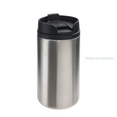 Termobögre duplafalú: kívül rozsdamentes acél, belül műanyag, műanyag fedél biztonságos csavaros kupakkal és nyílással az iváshoz, gumírozott talp a kiváló tapadás érdekében Kapacitás kb. 290 ml Méret: Ø7 x 14 cm Rendelésre: 5-10 nap! A dekoráció nem k