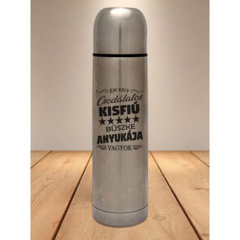 Termosz anyukáknak, csodálatos kisfiú. Édesanyának aki egy csodálatos kisfiú büszke anyukája, ha több kisfiúnak is szerencsés anyukája írd meg nekünk megrendelés előtt hány kisfiúról van szó és mi úgy készítjük el neked a terméket. Rendelj a legjobb anyuk