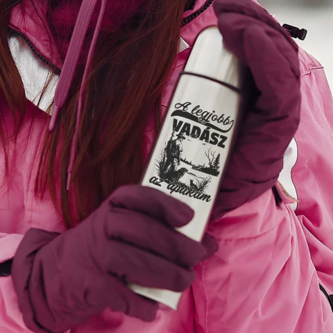 Termosz apáknak, legjobb vadász az apukám. Minden édesapának aki szeret vadászni remek meglepetés születésnapjára, apák napjára is. Tökéletes vadászkellék a téli és a nyári napokra is. Termosz űrtartalma 500ml vagy 750ml, anyaga fém és műanyag. Stíluso
