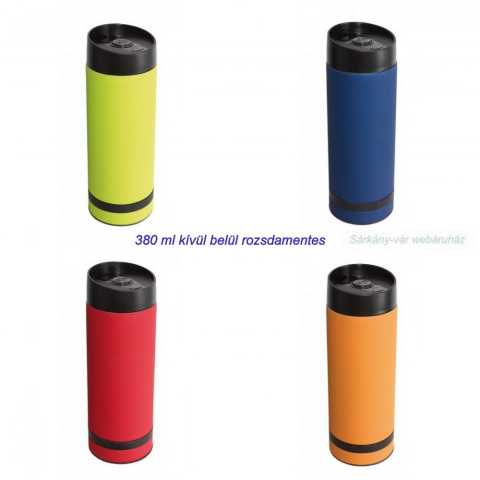 Termosz bögre vidám színekben. Duplafalú, kívül és belül rozsdamentes acél, műanyag fedél biztonságos csavaros kupakkal. Tetején nyitó/záró nyomógomb és beépített nyílás iváshoz. Kapacitás: kb. 380 ml Rendelésre: 5-10 nap! Méret: Ø7 x 20,5 cm Nettó