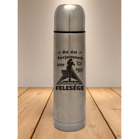 Termosz feleségeknek, csodálatos feleség. Az én férjemnek van egy csodálatos felesége feliratos ajándék feleségeknek évforfulóra, Valentin napra vagy születésnapra. Humoros termosz választható 500ml-es és 750ml-es változatban is. Melegen vagy hidegen is