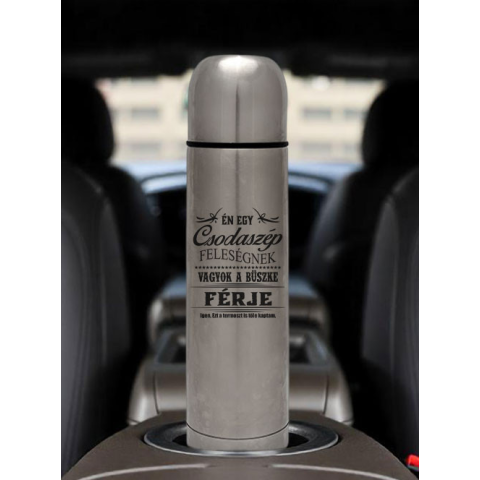 Termosz férfiaknak, feleség büszke férje. Ajándék férjeknek. Én egy csodaszép feleségnek vagyok a büszke férje termosz születésnapra, apák napjára, karácsonyra. Termoszaink rozsda mentes acél anyagból készültek, 500ml-es és 750ml-es változatban elérhetőek