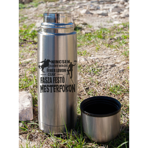 Termosz szobafestőknek, festő mesterfokon. Remek ajándék szobafestőknek, ajándék ötlet férfiaknak bármilyen alkalomra. Lepd meg egy családtagodat, kollégád névnapján vagy születésnapján egy ilyen termosszal Télen és nyáron is kitűnő választás. Mérete 500m