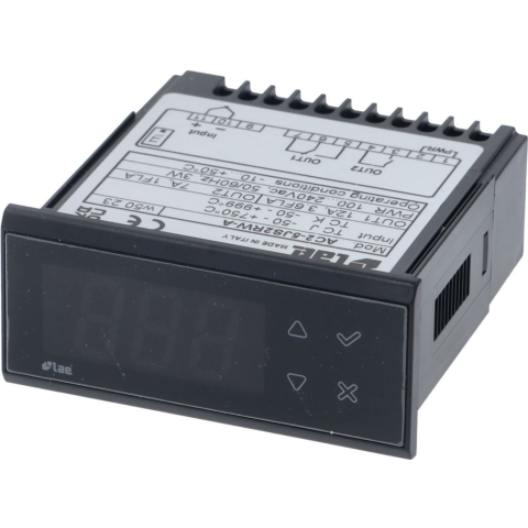 tápfeszültség 115/230V | termosztát beállítási tartomány -50+999°C | BE-KI szabályozás 2 működési ponttal | 1 átkapcsoló relé kimenet 12(4)A 250V | 1 átkapcsoló relé kimenet 7(2)A 250V | szondatípus TCJ-TCK (nem tartozék) | csatlakozás csavaros sorkapoccs
