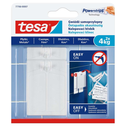 A tesa csempén és fémen használható öntapadós akasztószögével gyerekjáték konyhai felszereléseket és dekorációkat sima felületekre rögzíteni. Egy akasztószög 4 kg-ig tart biztonsággal, két akasztószög teherbírása pedig 8 kg. Nincs szükség szerszámokra, ráadásul nyom nélkül eltávolítható. Használati útmutató - Lépésről lépésre 1. Tisztítsa meg a felületet a portól és zsiradéktól egy tiszta törlőruhával és némi szilikonmentes ablaktisztító