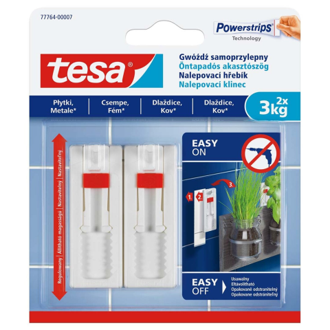 Az ismételten felhasználható, nyom nélkül eltávolítható és állítható, 3 kg súlyt is elbíró, csempén és fémen használható Tesa öntapadós akasztószög rendkívül egyszerű megoldást kínál nem lapos hátoldalú tárgyak rögzítéséhez sima és szilárd beltéri felületekre. Egy akasztószög 3 kg-ig tart biztonsággal, két akasztószög teherbírása pedig 6 kg. Nincs szükség szerszámokra, és a felületek sem fognak sérülni. Használati útmutató - Lépésről