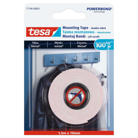 1 kép Tesa Rögzítőszalag sima felületekhez 1,5 m x 19 mm 100kg
