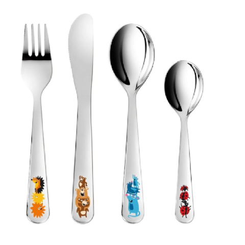 Gyermek étkészlet, 3 éves kortól ajánlott. Első osztályú rozsdamentes acélból készült, mosogatógépben is moshat