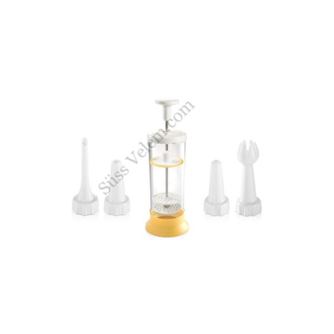 Gyors és könnyű házi tejszínhab készítésére alkalmas Közvetlenül a habverőből díszítheted ételeidet és italjaidat, nem szükséges külön habzsák Szilikon tömítés megakadályozza, hogy a tejszín kijusson az eszközből 3 díszítő