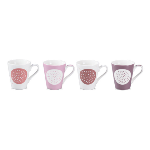 A myCOFFEE teásbögrék és kávéscsészék vékonyfalú „New Bone“ porcelánból készültek, amely kivételes rendkívüli fehérségével és ellenállóságával. A négy bögréből álló készlet eredeti módon ötvözi a porcelán bögrék