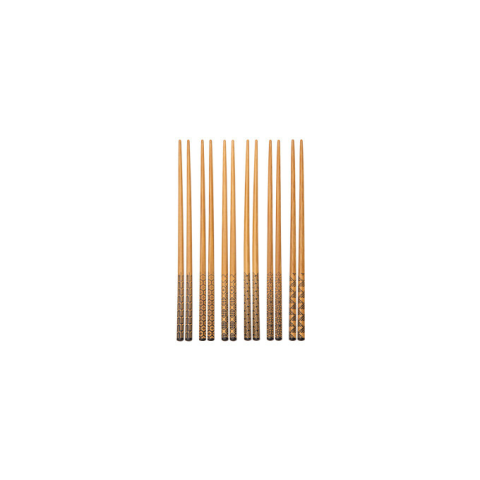Bambusz evőpálcikák (12db) és tároló alátétek (6db), ellenálló felületkezeléssel és eredeti dekorációval. Tisztítsa folyó víz alatt, ne mossa mosogatógépben