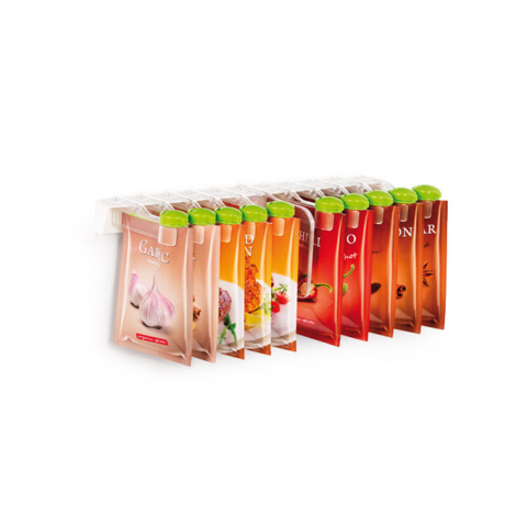 Kiválóan alkalmas az ételek ízesítésére egyenesen a fűszereszacskóból, valamint a fűszerestasakok lezárására a tárolásnál. A felfüggeszthető listán lévő fűszerek a konyhaszekrényben egyenként is kivehetők, de levehető mind a 10