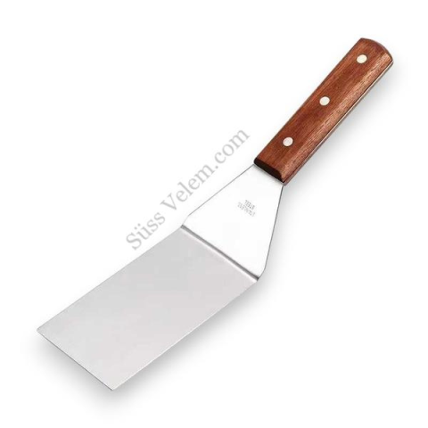 A tésztaspatula, hajlított szögletes 30 cm tökéletes eszköz, ha precízen és könnyedén szeretnéd mozgatni a tésztákat, süteményeket vagy pizzát! Rozsdamentes acél kialakításának köszönhetően tartós és megbízható társ a konyhá
